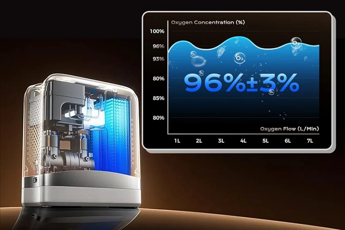 Automatic differential pressure compensation algorithm, the plateau at an altitude of 6000 meters can still continuously produce a stable high oxygen concentration of 95%±3%.